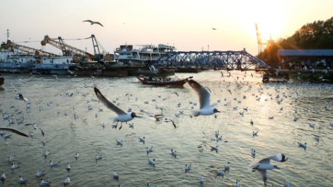 Seagulls seen near jetty along Yangon River in Myanmar
