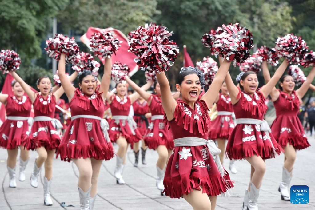 Performers march in costumes during the Villa-Zapata carnival in Mexico City, Mexico, on Dec. 6, 2025. The 11th Villa-Zapata carnival was hosted in Mexico City on Saturday. Folkloric dances, traditional music, and street processions were seen along the Paseo de la Reforma avenue during the event, promoting traditional Mexican culture while paying tribute to revolutionary leaders Emiliano Zapata and Francisco Villa in the Mexican Revolution of 1910-1920. (Xinhua/Li Mengxin)