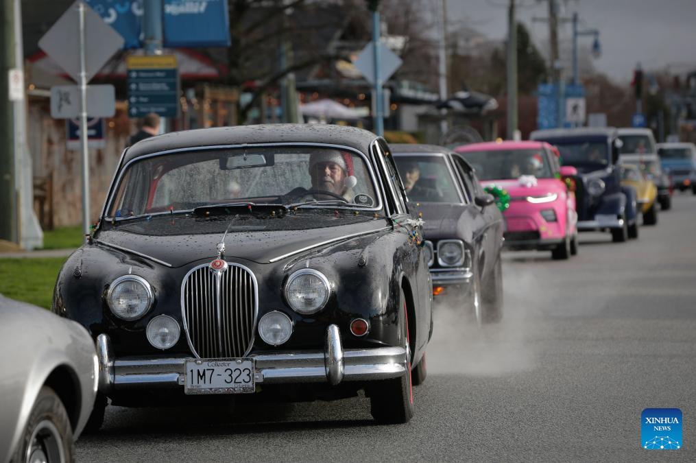 The annual event was held here on Sunday, featuring dozens of classic vehicles with Christmas decorations parading through the communities and collecting toys for charity. (Photo by Liang Sen/Xinhua)