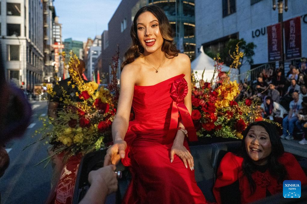 China's freeski Olympic champion Gu Ailing attends a float parade celebrating the Chinese Lunar New Year in San Francisco, the United States, March 7, 2026. (Photo by Ziyu Julian Zhu/Xinhua)