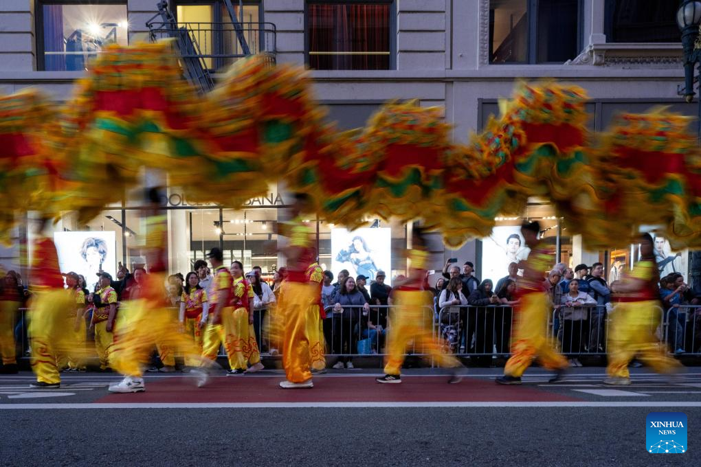 People attend a float parade celebrating the Chinese Lunar New Year in San Francisco, the United States, March 7, 2026. (Photo by Dong Xudong/Xinhua)