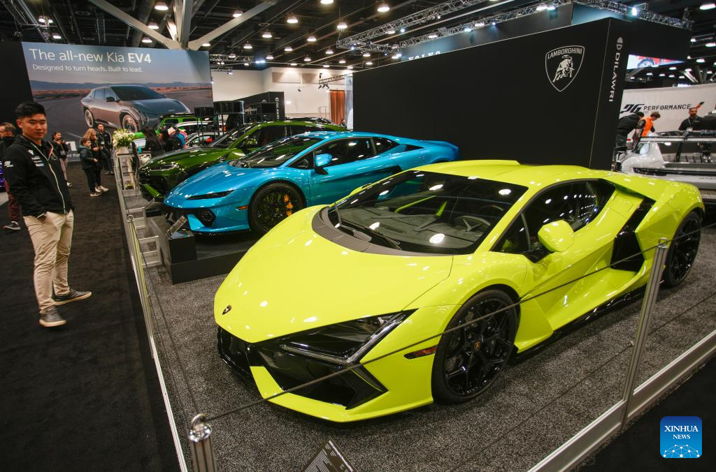 People visit the exhibition area of Lamborghini at the 2026 Vancouver International Auto Show in Vancouver, British Columbia, Canada, on March 25, 2026.