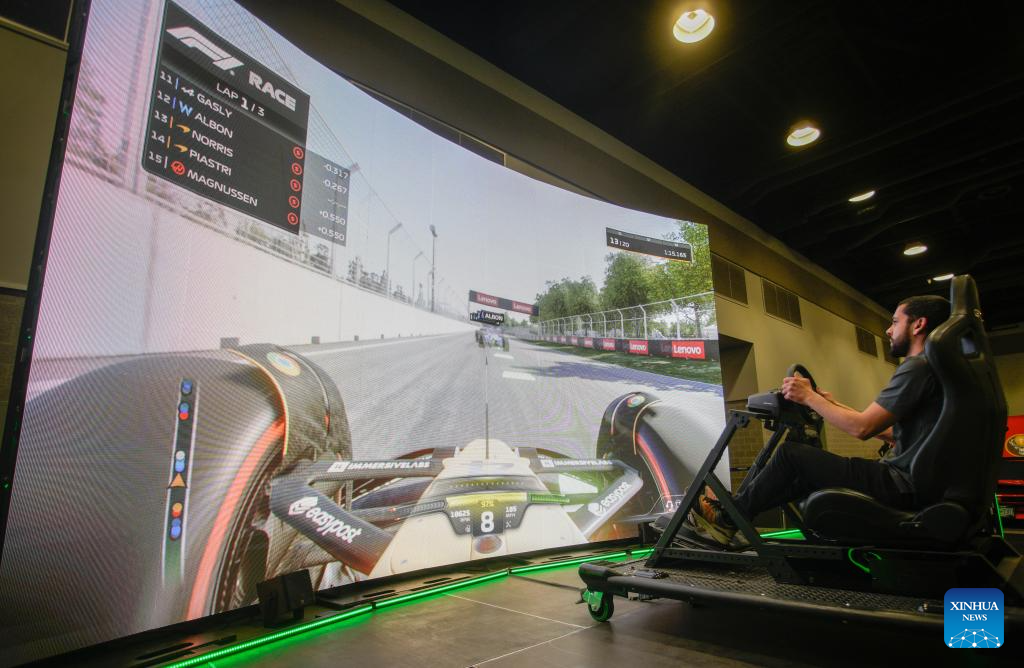 A visitor experiences a Formula 1 simulator at the 2026 Vancouver International Auto Show in Vancouver, British Columbia, Canada, on March 25, 2026.