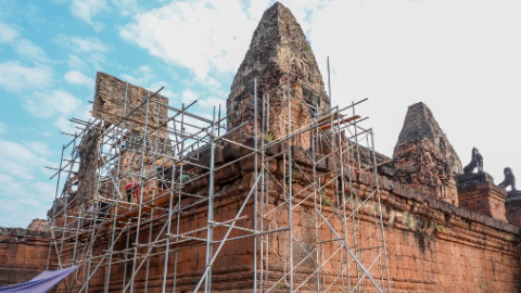 Archaeologists restoring Hindu temple's tower in Cambodia's famed Angkor complex