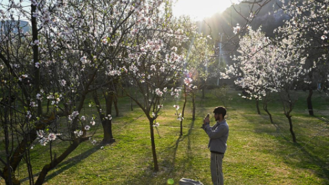 Almond trees in full bloom at park in Srinagar