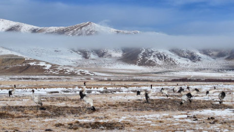 Black-necked cranes seen in Hongyuan County, China's Sichuan