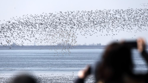 Migratory birds seen on Yalu River estuary in Dandong, China's Liaoning