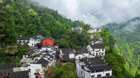View of Qiyun Mountain scenic area after rain in China's Anhui