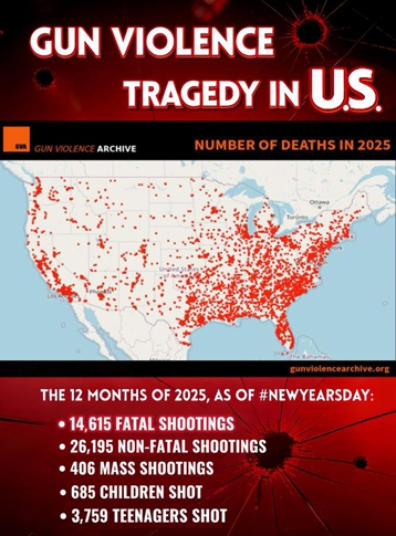 Poster: Over 14,000 killed in U.S. gun violence in 2025