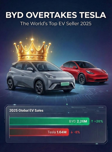 BYD surpasses Tesla as world's top EV seller in 2025