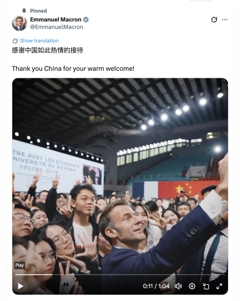 French President Macron stresses cooperation, mutual understanding in speech at Chinese university