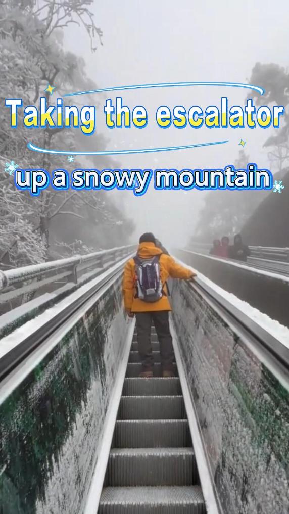 Taking escalator up snowy mountain in E China