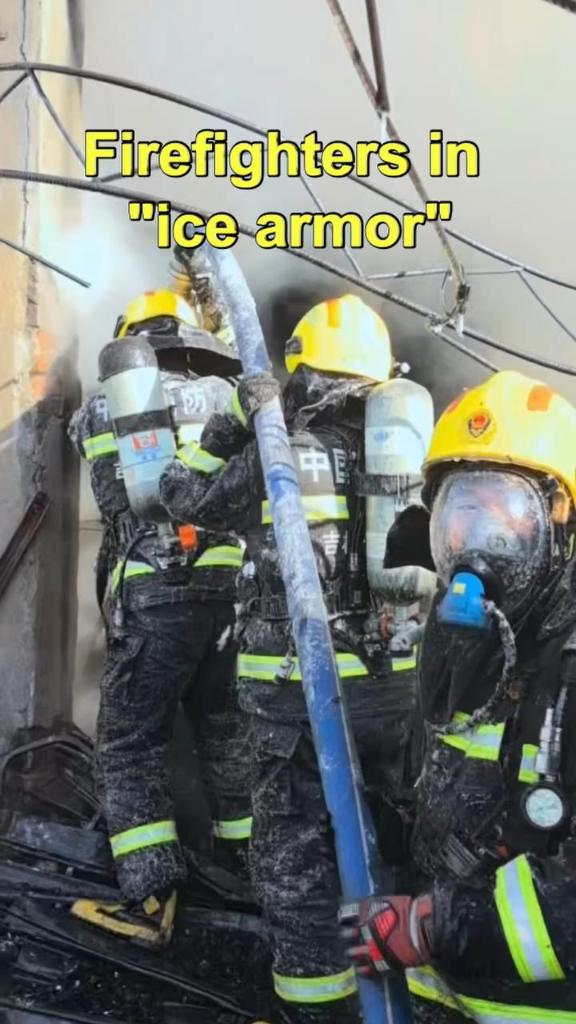 Firefighters encased in "ice armor" after battling blaze in extreme cold
