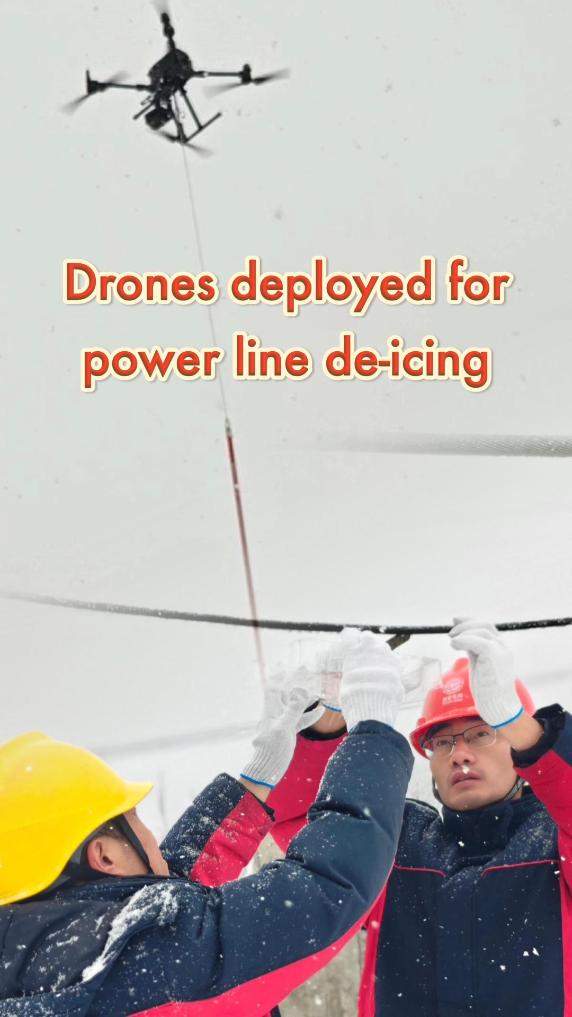 Drones deployed for power line de-icing in Shanxi, China