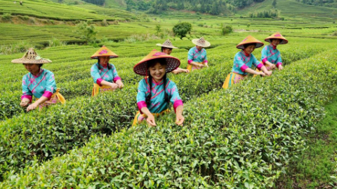 Tea farmers, enterprises busy harvesting and processing spring tea leaves across China