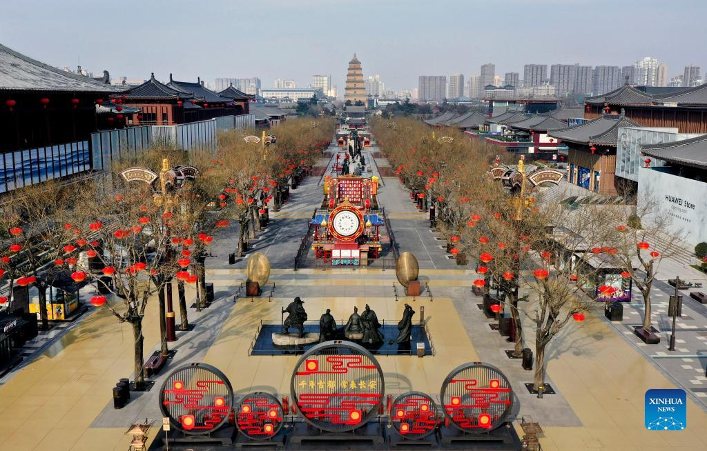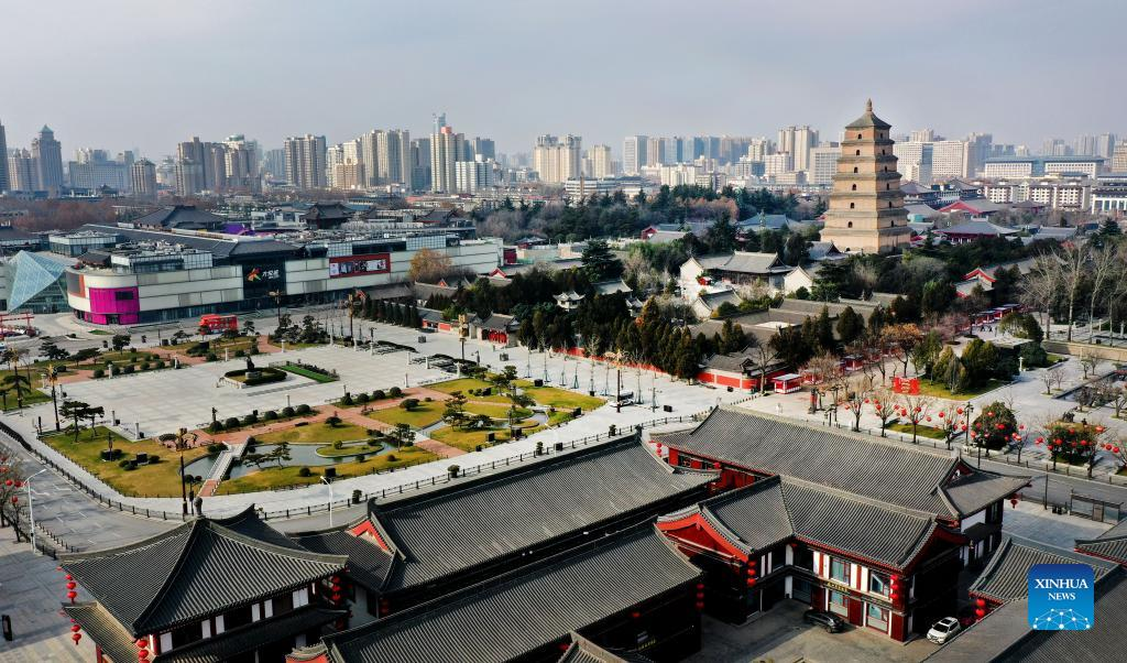 Aerial photo taken on Dec. 28, 2021 shows the surrounding area of Dayan Pagoda in Xi'an, northwest China's Shaanxi Province. Authorities in Xi'an have upgraded epidemic control and prevention measures starting Monday, ordering all residents to stay indoors and keep away from gatherings except when taking nucleic acid tests. (Xinhua/Tao Ming)