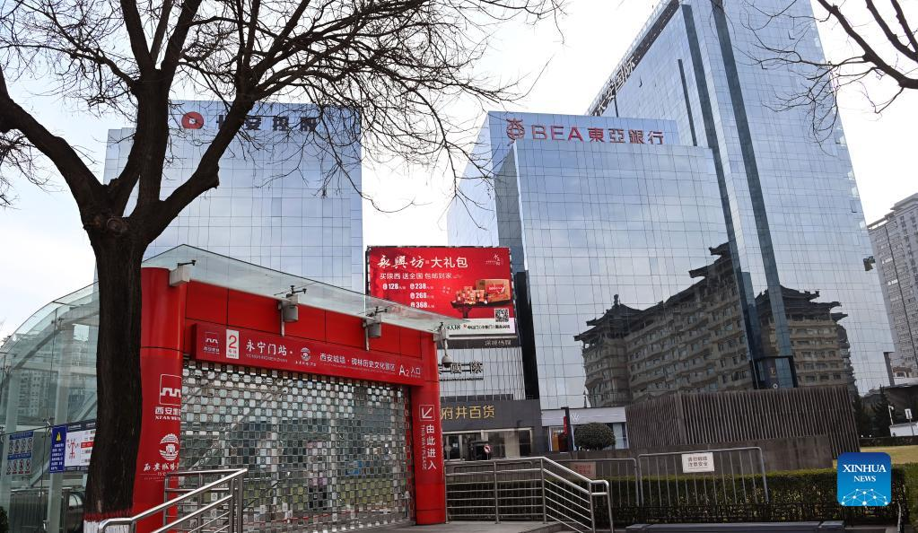 Aerial photo taken on Dec. 28, 2021 shows the empty Great Tang All Day Mall in Xi'an, capital of northwest China's Shaanxi Province. Authorities in Xi'an have upgraded epidemic control and prevention measures starting Monday, ordering all residents to stay indoors and keep away from gatherings except when taking nucleic acid tests. (Xinhua/Tao Ming)