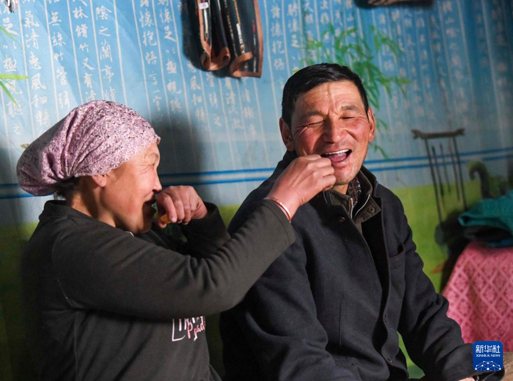 Herdsmen take a rest at home at the Akyaz Valley in Zhaosu County, northwest China's Xinjiang Uygur Autonomous Region, Jan. 26, 2022. Herdsmen in Xinjiang had lived a nomadic life for centuries. Under a housing project to benefit hundreds of households of local herdsmen, local authorities have initiated construction of supporting facilities to help herdsmen's settlement. It helps herdsmen to start a new life with better medical, educational, cultural and health facilities. (Xinhua/Zhao Ge)