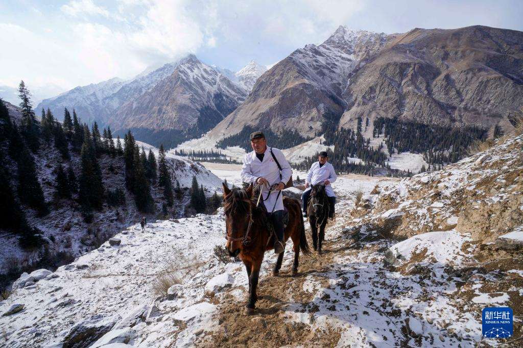 Doctors are on their way to visit patients at the Akyaz Valley in Zhaosu County, northwest China's Xinjiang Uygur Autonomous Region, Jan. 25, 2022. Herdsmen in Xinjiang had lived a nomadic life for centuries. Under a housing project to benefit hundreds of households of local herdsmen, local authorities have initiated construction of supporting facilities to help herdsmen's settlement. It helps herdsmen to start a new life with better medical, educational, cultural and health facilities. (Xinhua/Zhao Ge)
