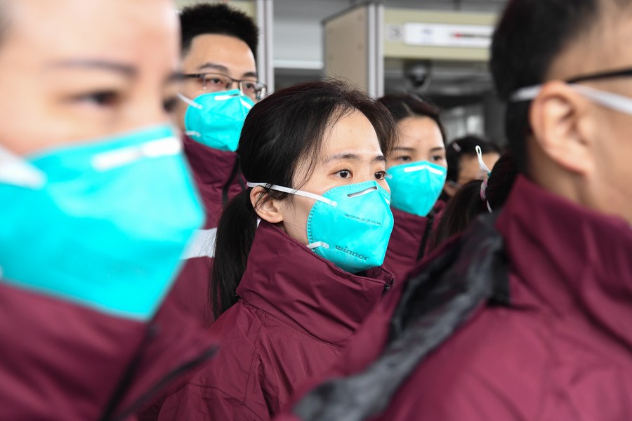 The second anti-pandemic work group from the Chinese mainland gets ready to depart from Shenzhenwan Port in Shenzhen, south China's Guangdong Province, Feb. 19, 2022. (Xinhua/Liang Xu)