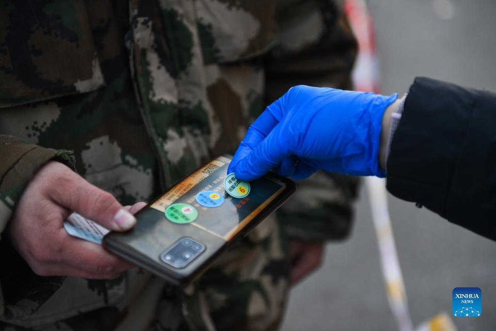 A staff member registers information for a resident to take nucleic acid tests at a community in Hohhot, north China's Inner Mongolia Autonomous Region, Feb. 24, 2022. Hohhot launched its sixth round of COVID-19 nucleic acid testing on Thursday. (Xinhua/Liu Lei)