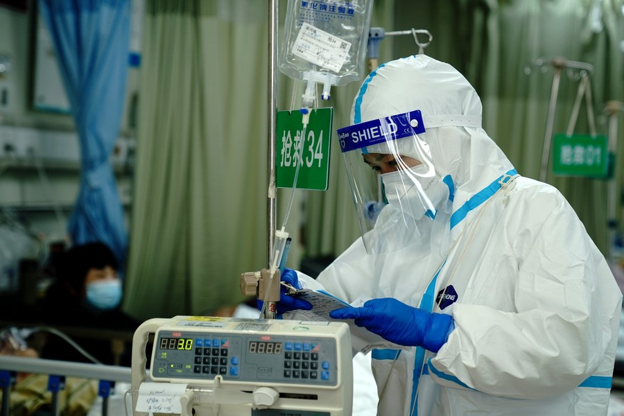 A medical worker checks records at the emergency room of Minhang Hospital affiliated to Fudan University in Shanghai, east China, April 20, 2022. (Xinhua/Zhang Jiansong)