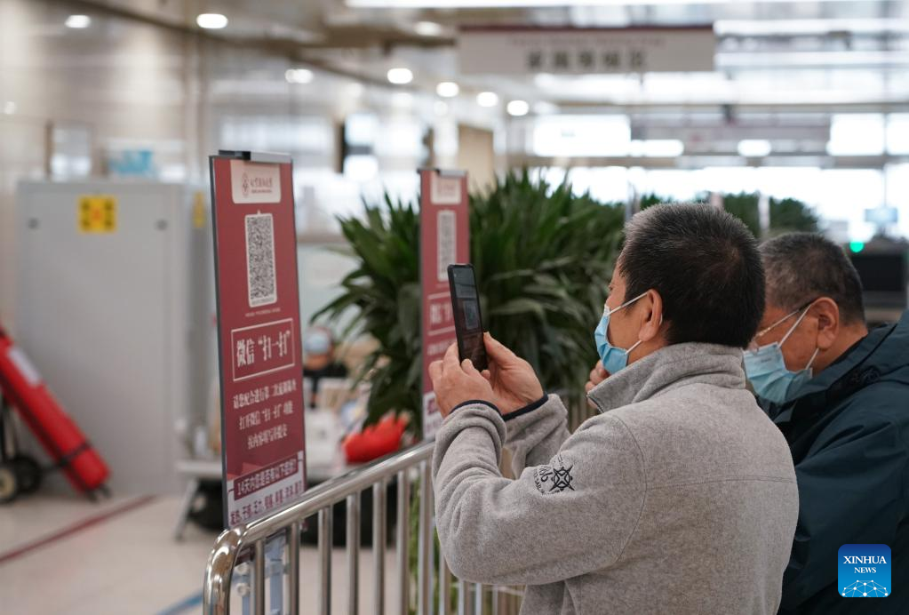 Relatives of patients scan QR codes to have their health status registered before entering the emergency department of Beijing Chao-Yang Hosptial in Beijing, capital of China, May 2, 2022. Amid the recent COVID-19 resurgence, staff members at Beijing Chao-Yang Hospital have been working hard to maintain efficient emergency medical services. (Xinhua/Chen Zhonghao)