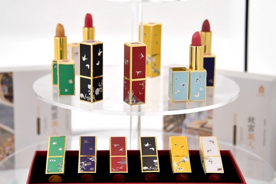 Screenshot shows Forbidden City-themed lipsticks of Bloomage Biotechnology Corporation Limited. (Xinhua/Chen Hao)