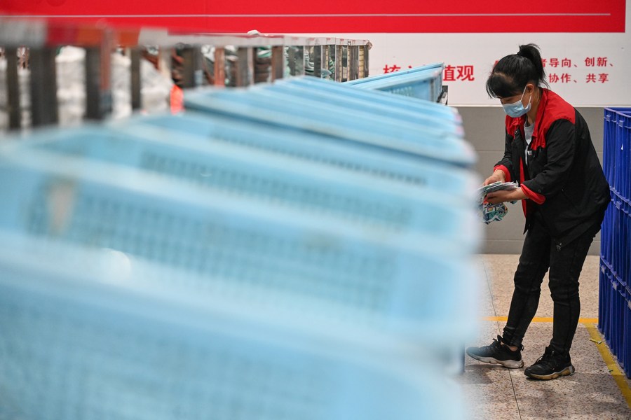A staff member works in a sports shoe company in Jinjiang City, southeast China's Fujian Province, May 14, 2022.(Photo by Zhou Yi/Xinhua)■