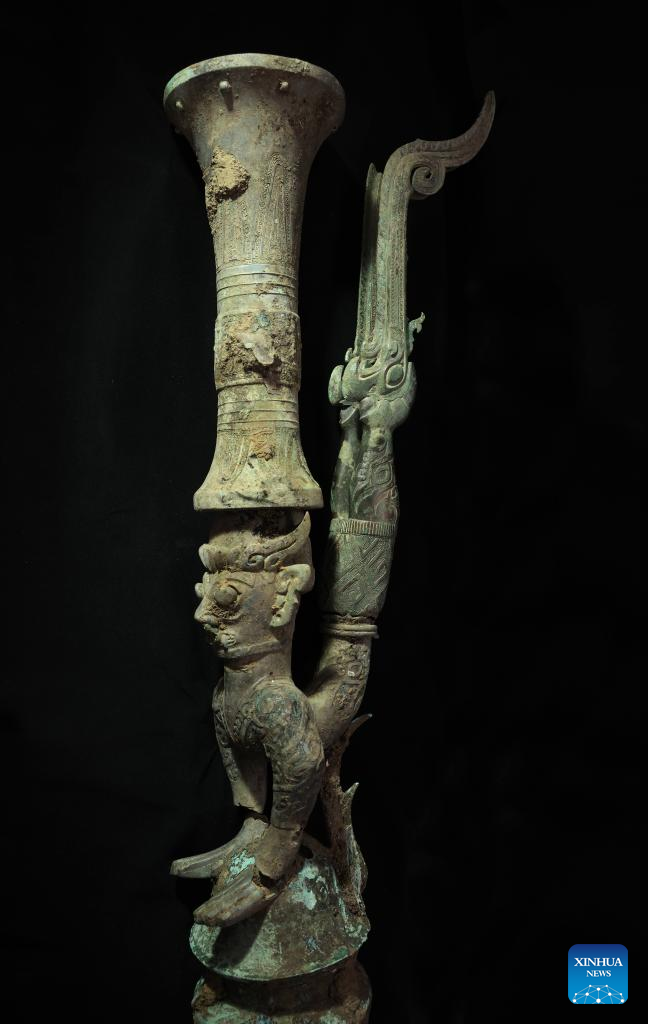 A newly unearthed bronze sculpture at the famed Sanxingdui Ruins site was successfully matched with another bronzeware part after being set apart about 3,000 years ago, the archaeological team confirmed Thursday.