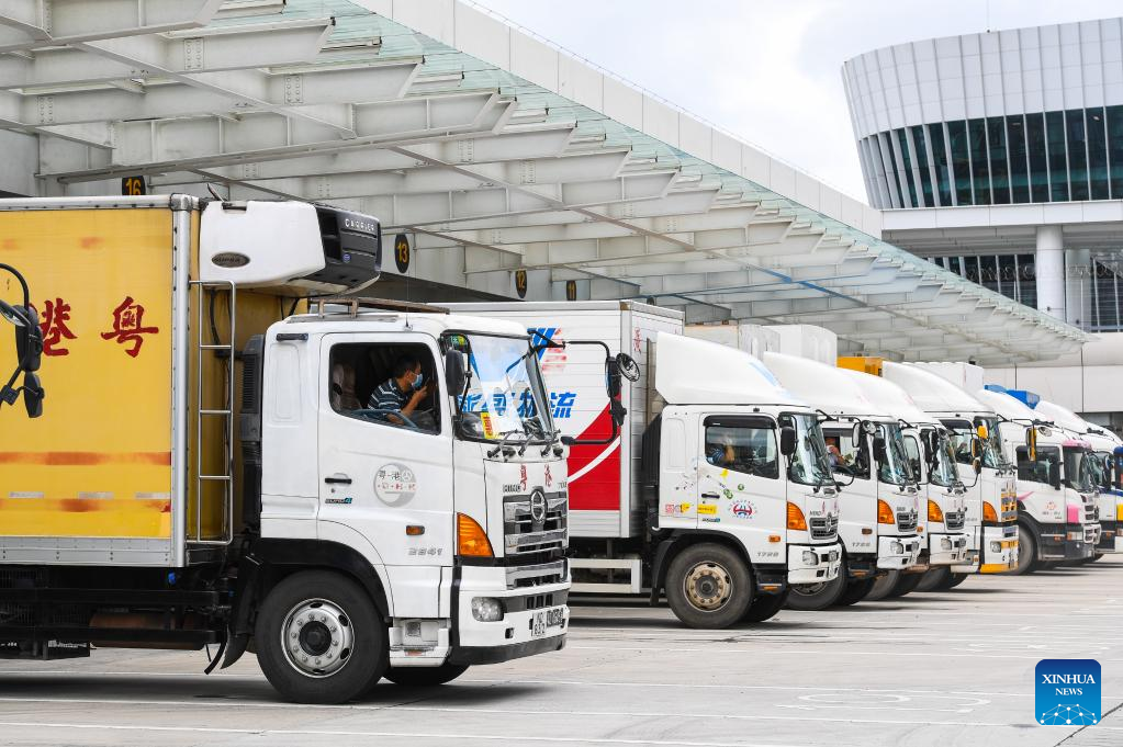 Vehicles are seen at the Liantang Port in Shenzhen, south China's Guangdong Province, June 17, 2022.