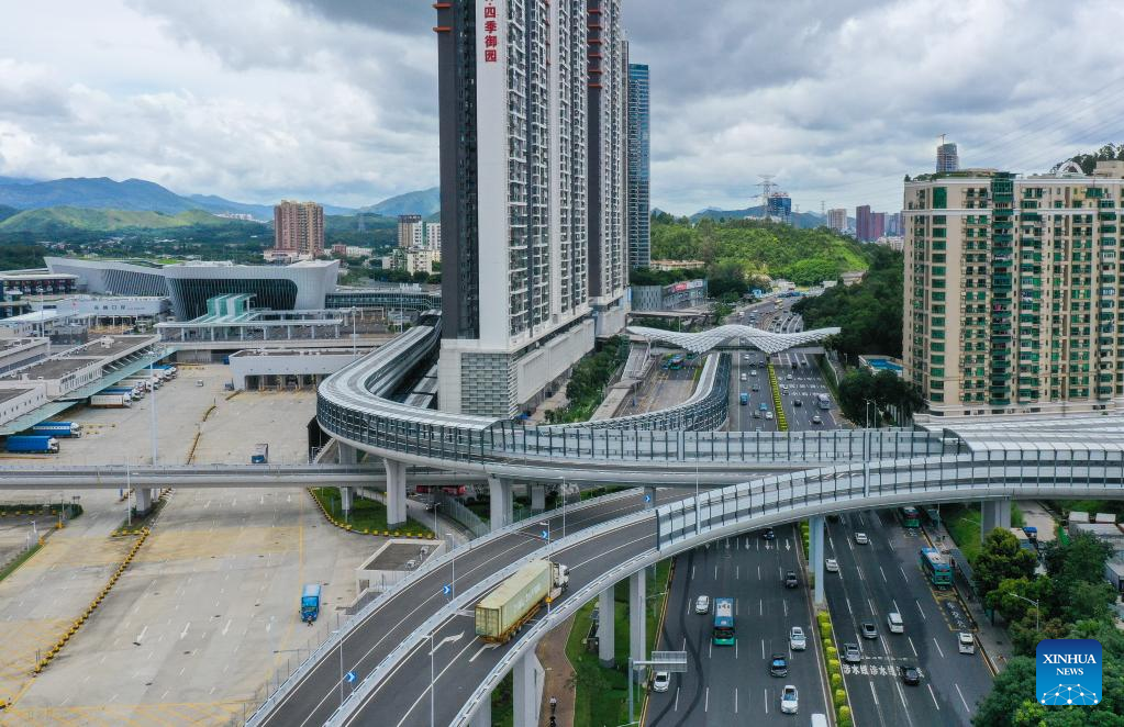 The project aims to facilitate the land transport between south China's Hong Kong and the mainland, and promote the development of the Greater Bay Area. (Office of Port of Entry and Exit of Shenzhen Municipal People's Government/Handout via Xinhua)