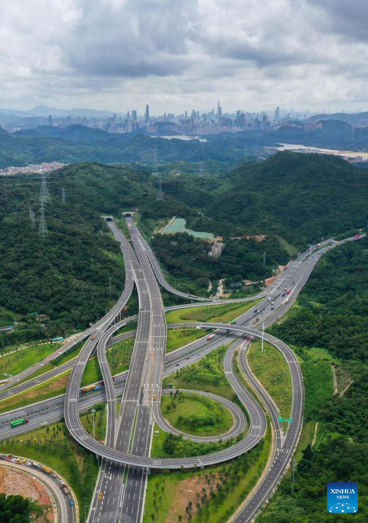 Aerial photo taken on June 17, 2022 shows a panoramic view of a highway passing through eastern areas in Shenzhen, south China's Guangdong Province.