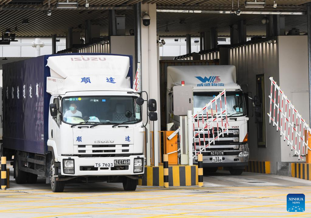 Vehicles pass the Liantang Port in Shenzhen, south China's Guangdong Province, June 17, 2022.