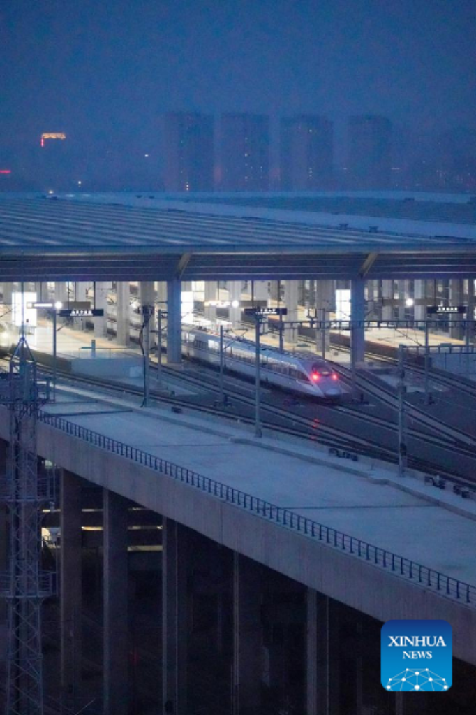 With a gross floor area of nearly 400,000 square meters, or 56 standard football pitches, Beijing Fengtai Railway Station has 32 rail tracks and 32 platforms and is able to accommodate a maximum of 14,000 passengers per hour. (Xinhua/Xing Guangli)