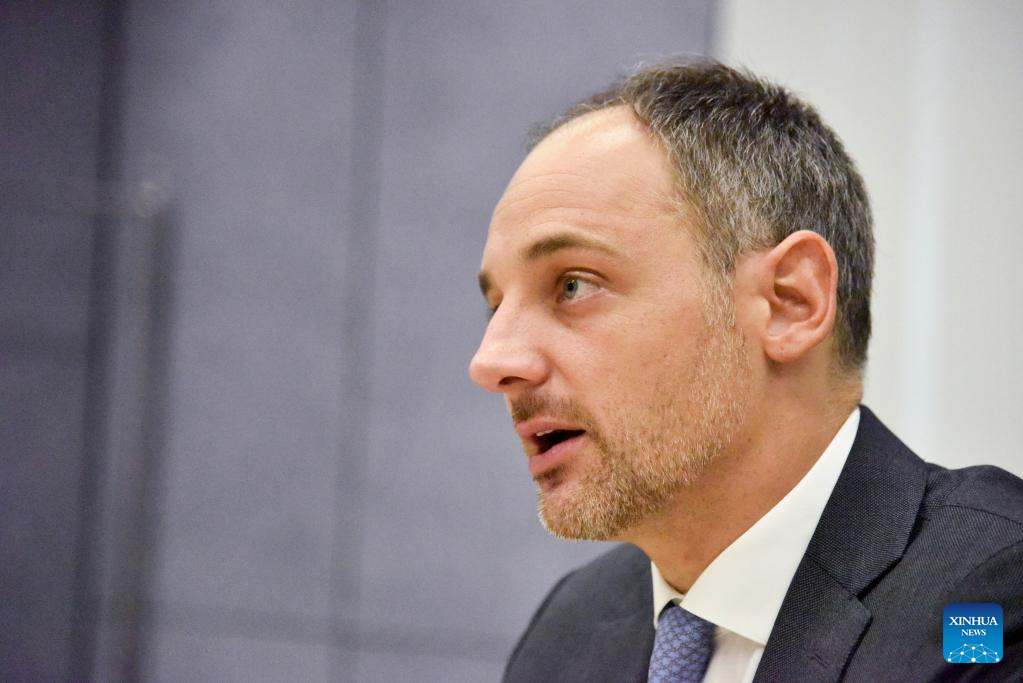Samuel Fischer, head of China onshore Debt Capital Markets for Deutsche Bank, speaks during an interview with Xinhua in Beijing, capital of China, June 21, 2022. (Xinhua/Zheng Jingxia)
