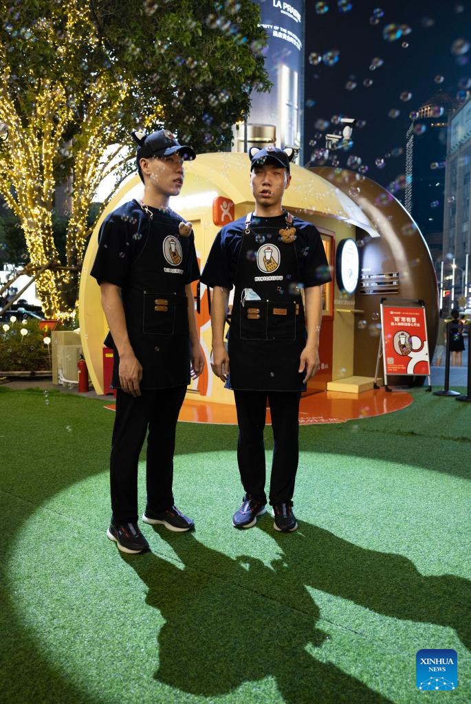 Yin Tianbao (R) and Yin Tianyou are seen on a party to celebrate their 23rd birthday in east China's Shanghai, July 24, 2022. Visually impaired twin brothers Yin Tianbao and Yin Tianyou learned coffee making skills with the help of their family and friends, and started a coffee shop in east China's Shanghai. Their shop is now under a trial operation. Xinhua reporter have had a month-long tracking interview with the brothers to record their steps before the shop's trial operation. (Xinhua/Jin Liwang)