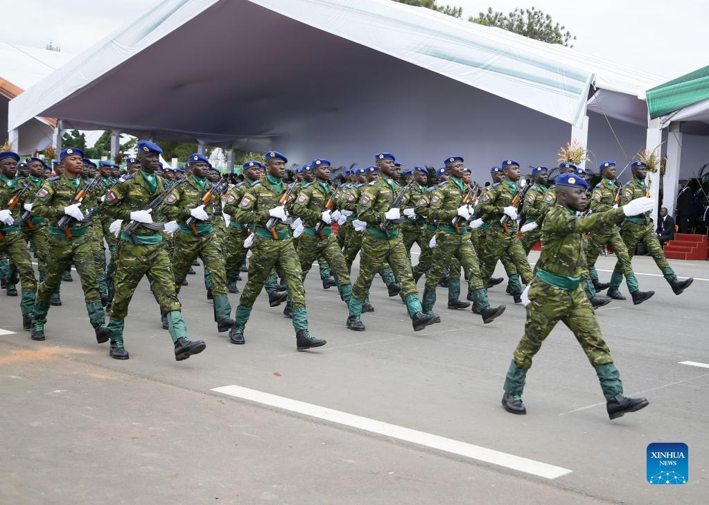 Soldiers attend a military parade marking the 62nd anniversary of Cote d'Ivoire's independence in Yamoussoukro, Cote d'Ivore, Aug. 7, 2022. (Photo by Yvan Sonh/Xinhua)