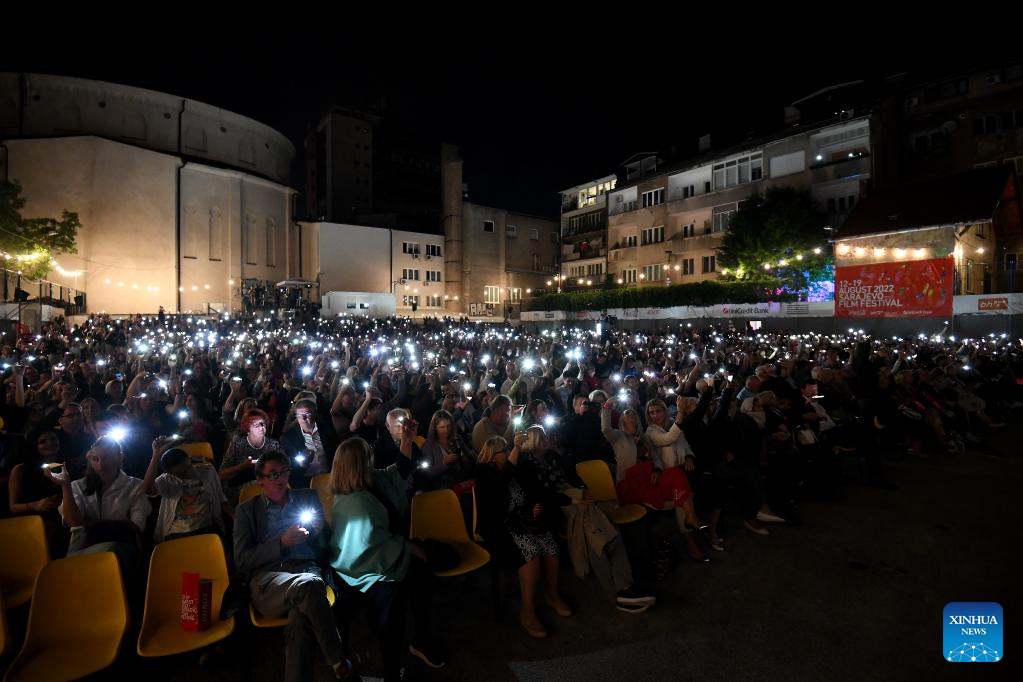 People light their phones during the opening ceremony of the 28th Sarajevo Film Festival in Sarajevo, Bosnia and Herzegovina, on Aug. 12, 2022. (Photo by Nedim Grabovic/Xinhua)