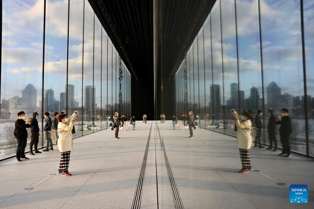 Visitors take photos at the Museum of Art Pudong in east China's Shanghai, Nov. 4, 2022. The fifth China International Import Expo (CIIE) is held in Shanghai from Nov. 5 to 10. (Xinhua/Jin Liwang)