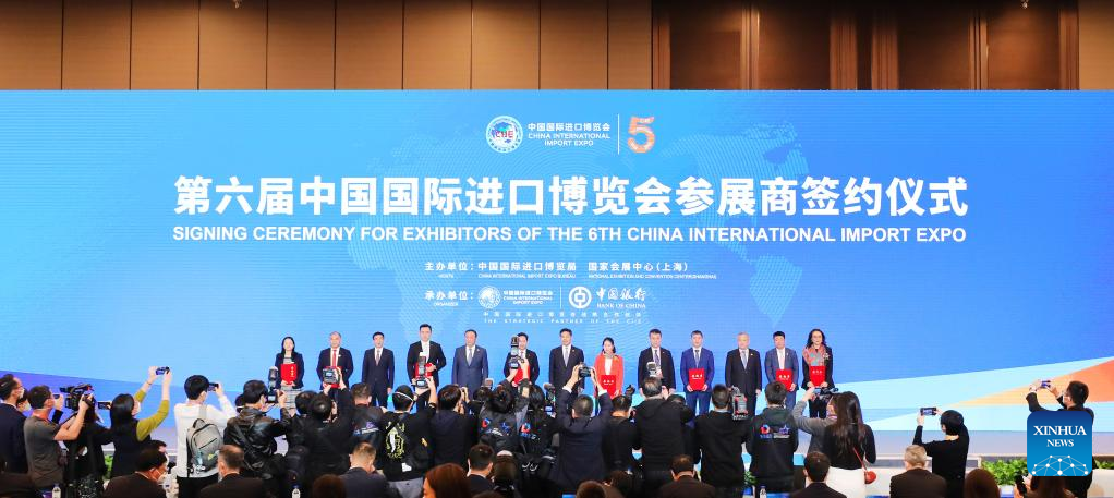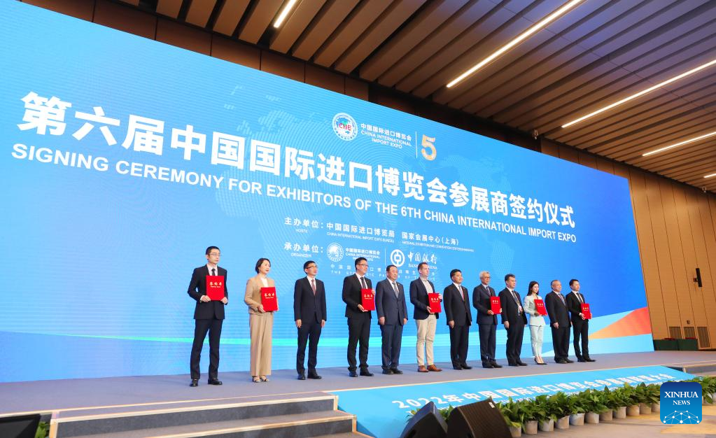 The signing ceremony for exhibitors of the sixth China International Import Expo (CIIE) is held in east China's Shanghai, Nov. 6, 2022. (Xinhua/Fang Zhe)