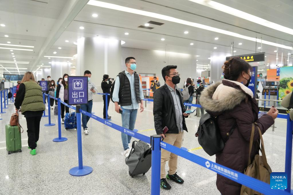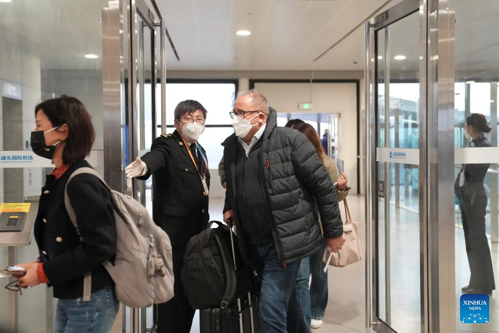 Inbound passengers arrive at Shanghai Pudong International Airport in east China's Shanghai, Jan. 8, 2023. From Sunday, China starts managing COVID-19 with measures designed for combating Class B infectious diseases, instead of Class A infectious diseases. (Xinhua/Ding Ting)