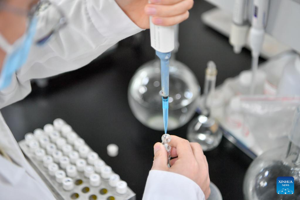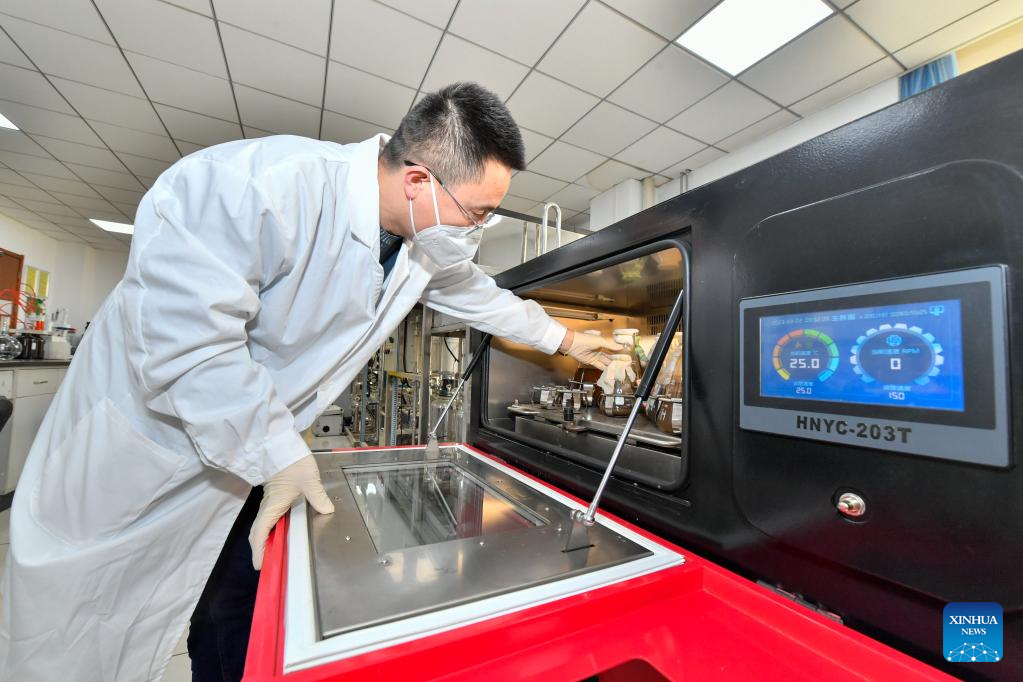 A researcher tests on industrial wastewater sample at the National Research Center of Industrial Water Treatment Engineering and Technology in north China's Tianjin, March 20, 2023. The National Research Center of Industrial Water Treatment Engineering and Technology at China National Offshore Oil Corporation Tianjin Chemical Research and Design Institute Co., Ltd. in Tianjin endeavors to promote scientific research and tackle key problems in industrial water treatment technology.