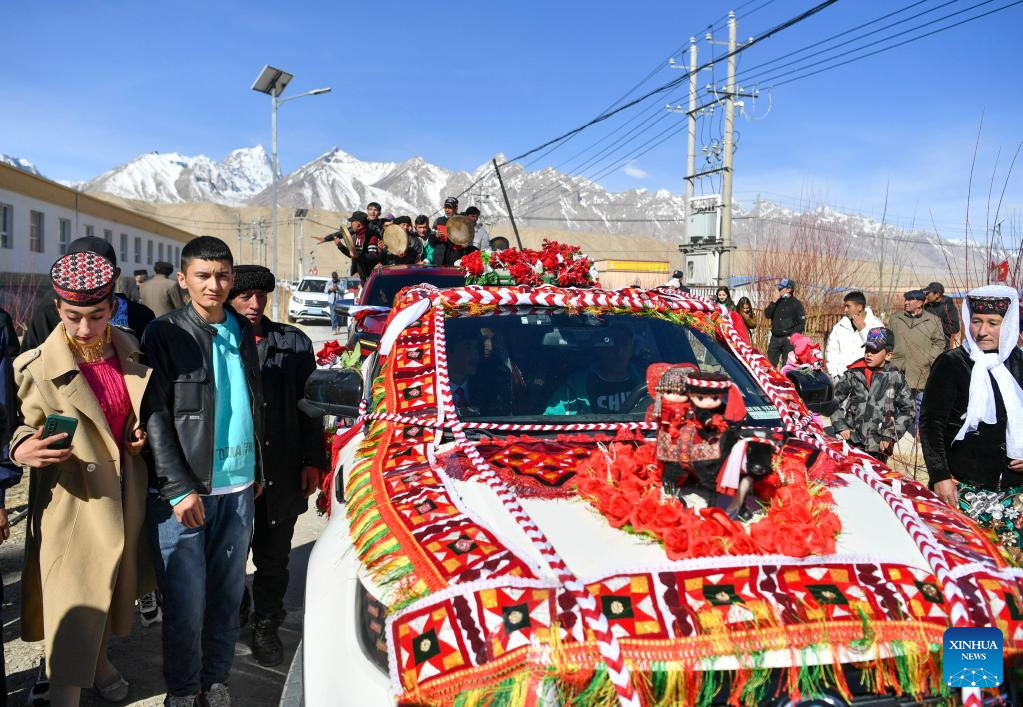 Mairmaitih Tirmur is on his way to pick up his bride in Taxkorgan Tajik Autonomous County, northwest China's Xinjiang Uygur Autonomous Region, March 19, 2023. In Taxkorgan Tajik Autonomous County, many young men and women prefer to get married in the spring season.