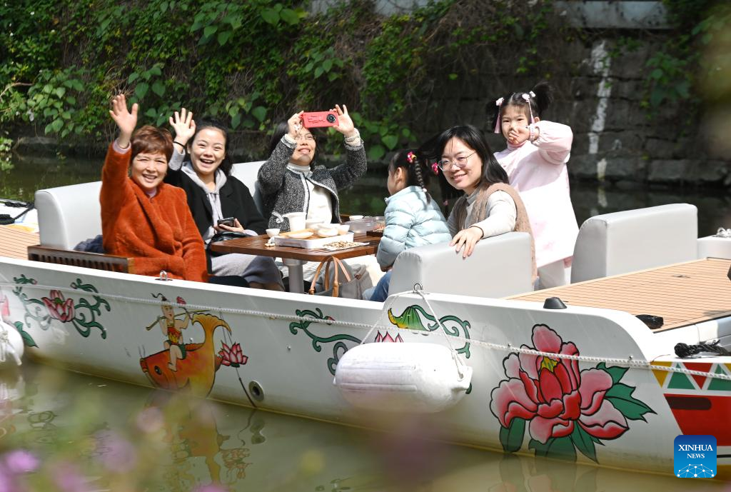 Tourists take a boat ride along the Baima River in Fuzhou, southeast China's Fujian Province, Feb. 25, 2023.