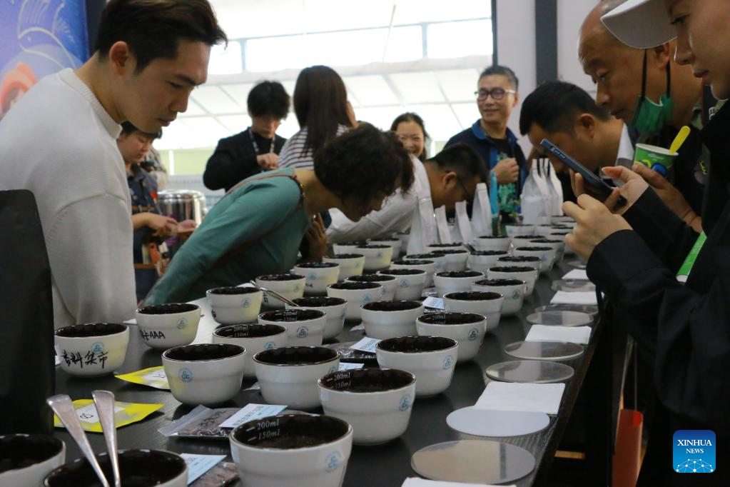 This photo taken on March 16, 2023 shows a cupping event for Yunnan specialty coffee at the 8th China Coffee Brewers Cup in Baoshan, southwest China's Yunnan Province. (Xinhua)