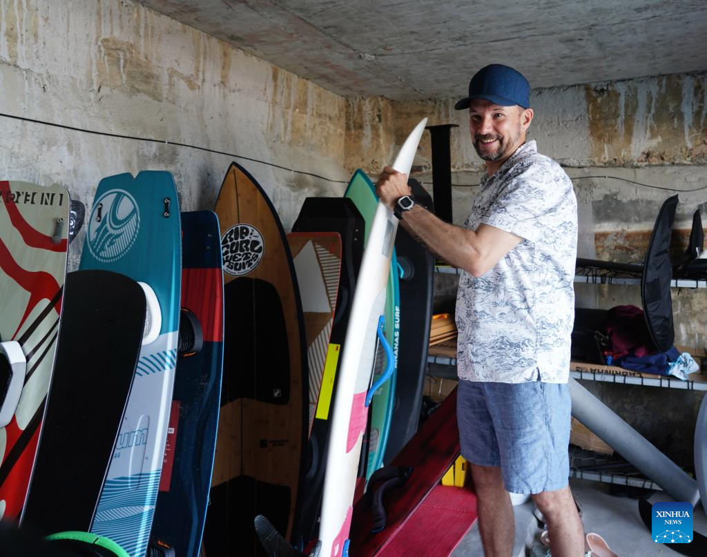 In 2015, Pantyukhin started his own surfing brand, designing and producing surfboards in cooperation with factories in Guangdong and Zhejiang provinces. His products are now sold not only in China, but also in Russia, Vietnam and the Philippines. (Xinhua/Zhang Liyun)
