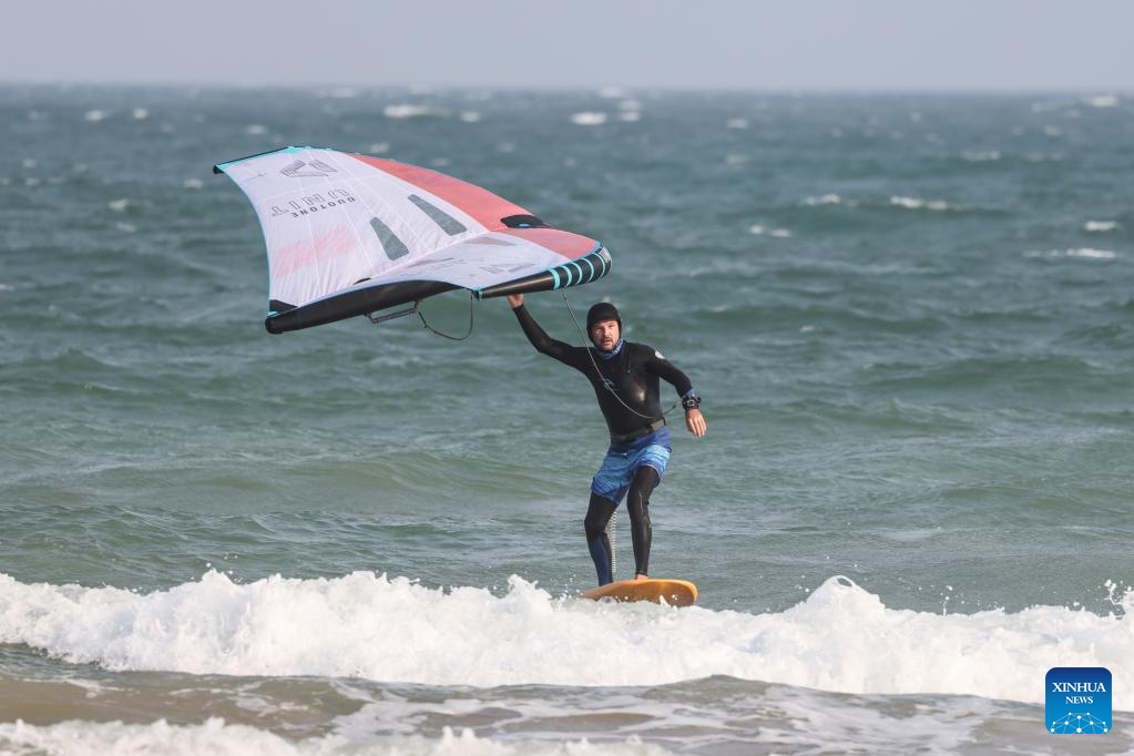 Alexander Pantyukhin surfs in Boao, south China's Hainan Province, March 22, 2023. Alexander Pantyukhin, a Russian living in Boao town of Hainan, is a surfing brand entrepreneur.