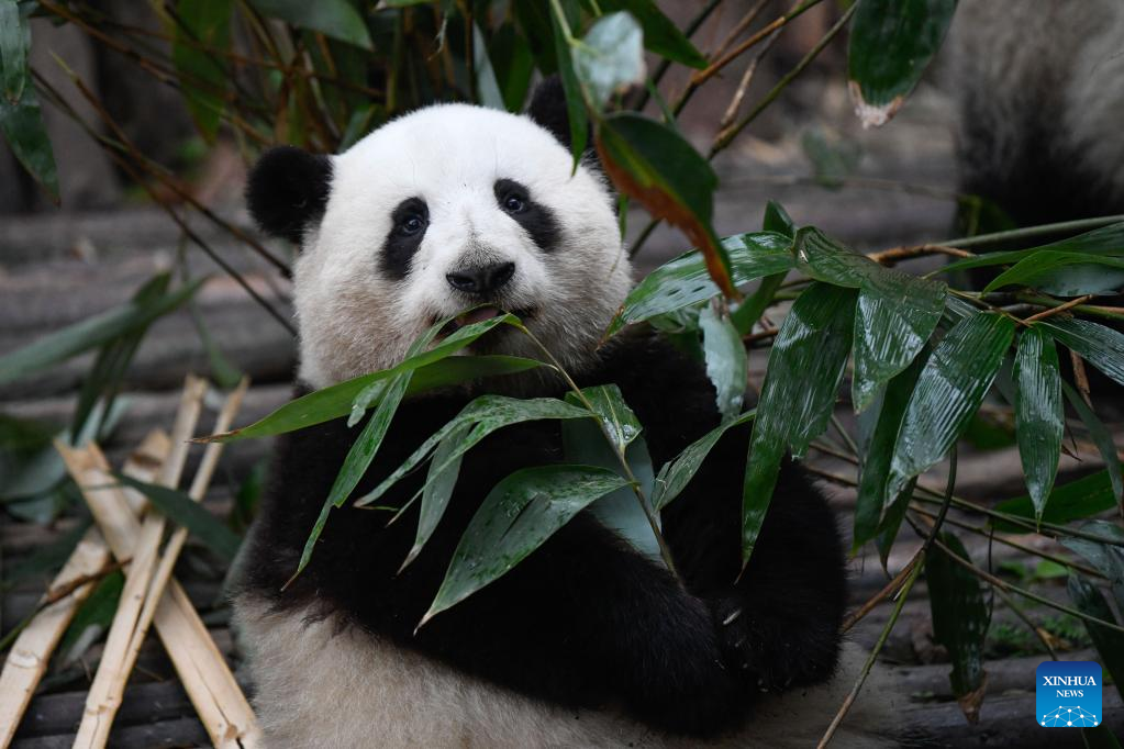 Giant panda Ai Li eats fresh bamboo at Chengdu Research Base of Giant Panda Breeding in Chengdu, southwest China's Sichuan Province, March 22, 2023. (Xinhua/Xu Bingjie)