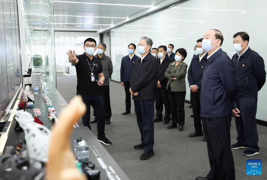 Zhao Leji, a member of the Standing Committee of the Political Bureau of the Communist Party of China (CPC) Central Committee and chairman of the Standing Committee of the National People's Congress (NPC), learns about independent innovation of a company in Guangzhou, south China's Guangdong Province, March 23, 2023. Zhao made an inspection tour of the southern Guangdong Province from Tuesday to Friday. (Xinhua/Pang Xinglei)